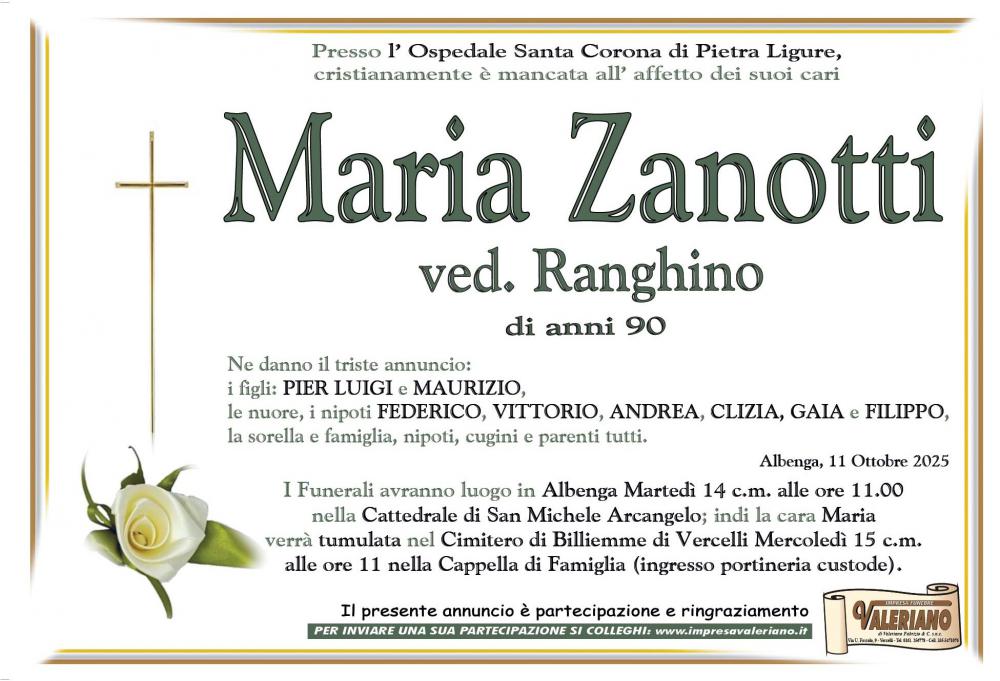 Partecipazione al lutto per la scomparsa di MARIA ZANOTTI di anni 90