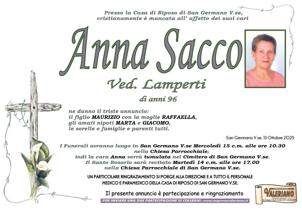 Partecipazione al lutto per la scomparsa di ANNA SACCO di anni 96