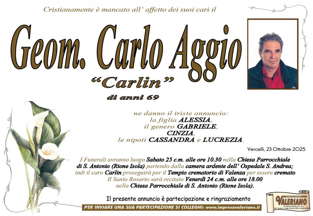 Partecipazione al lutto per la scomparsa di CARLO AGGIO di anni 69