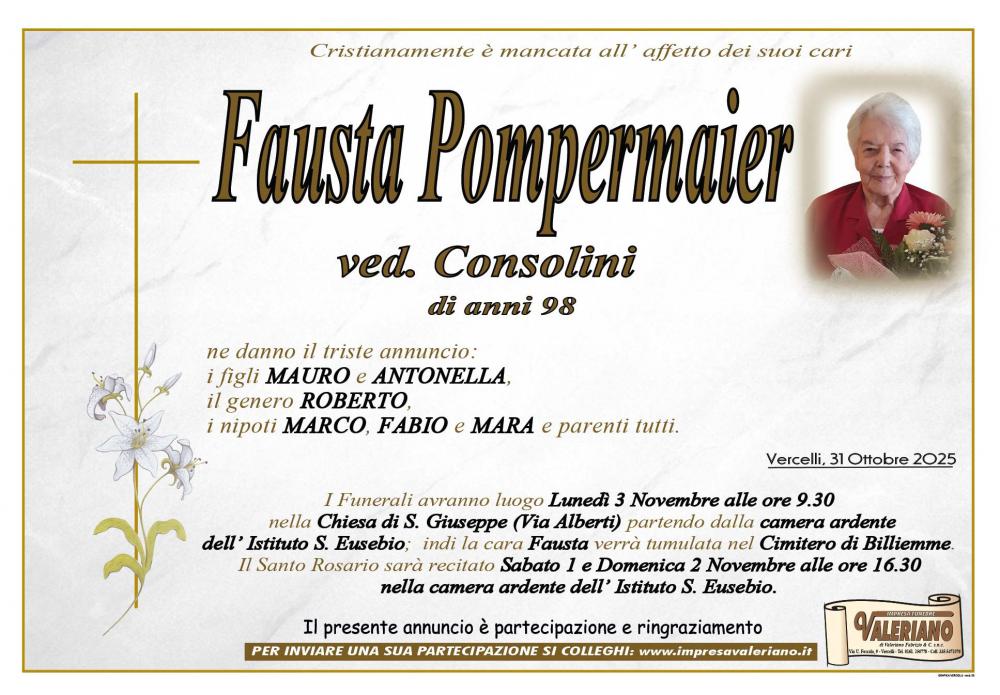 Partecipazione al lutto per la scomparsa di FAUSTA POMPERMAIER di anni 98