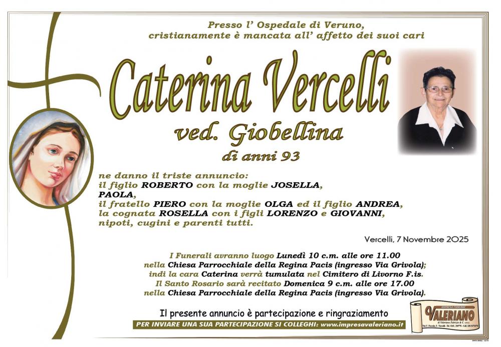 Partecipazione al lutto per la scomparsa di CATERINA VERCELLI di anni 93