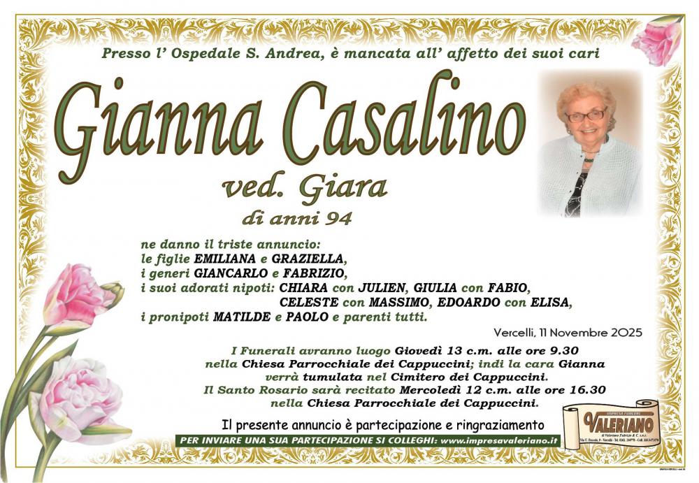 Partecipazione al lutto per la scomparsa di GIANNA CASA di anni 94