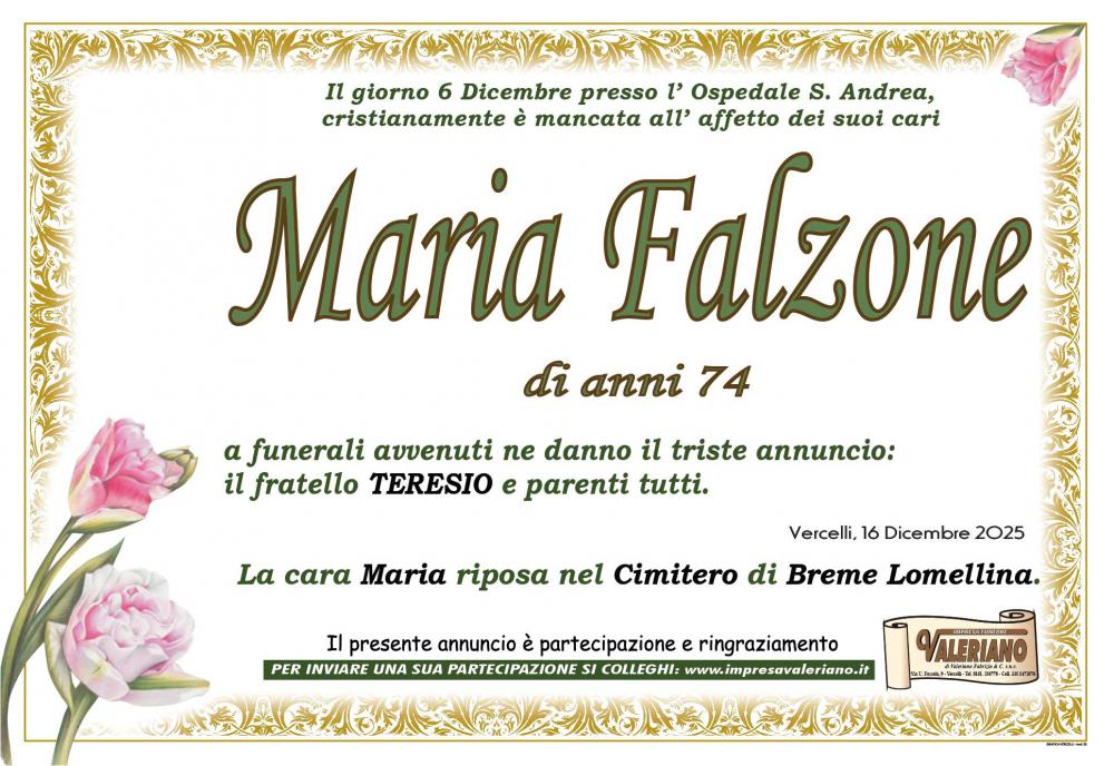 Partecipazione al lutto per la scomparsa di MARIA FALZONE di anni 74