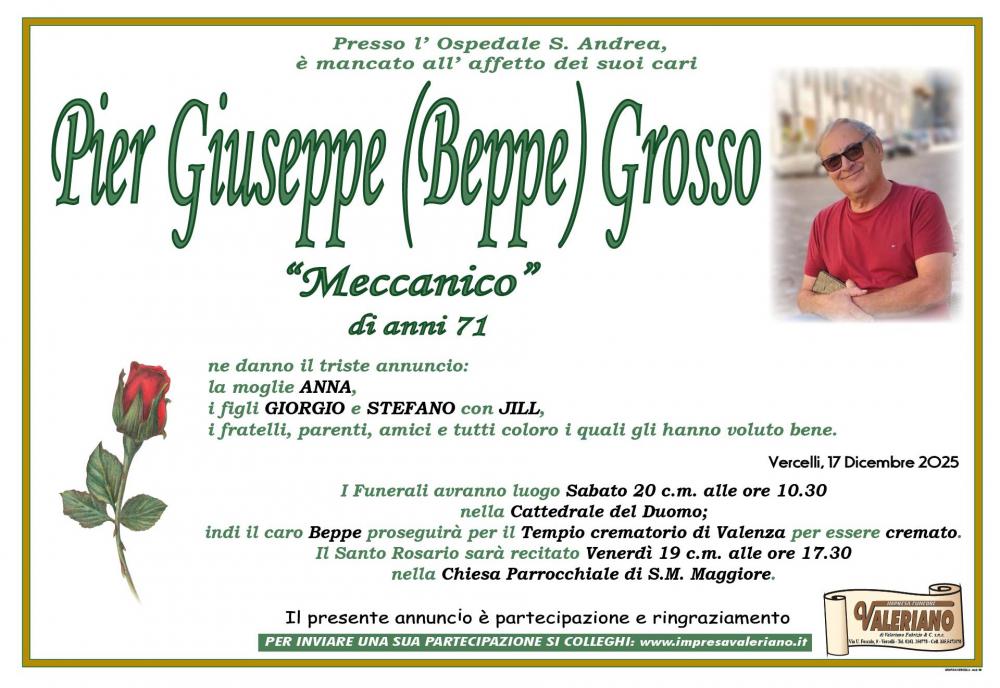 Partecipazione al lutto per la scomparsa di PIER GIUSEPPE GROSSO di anni 71
