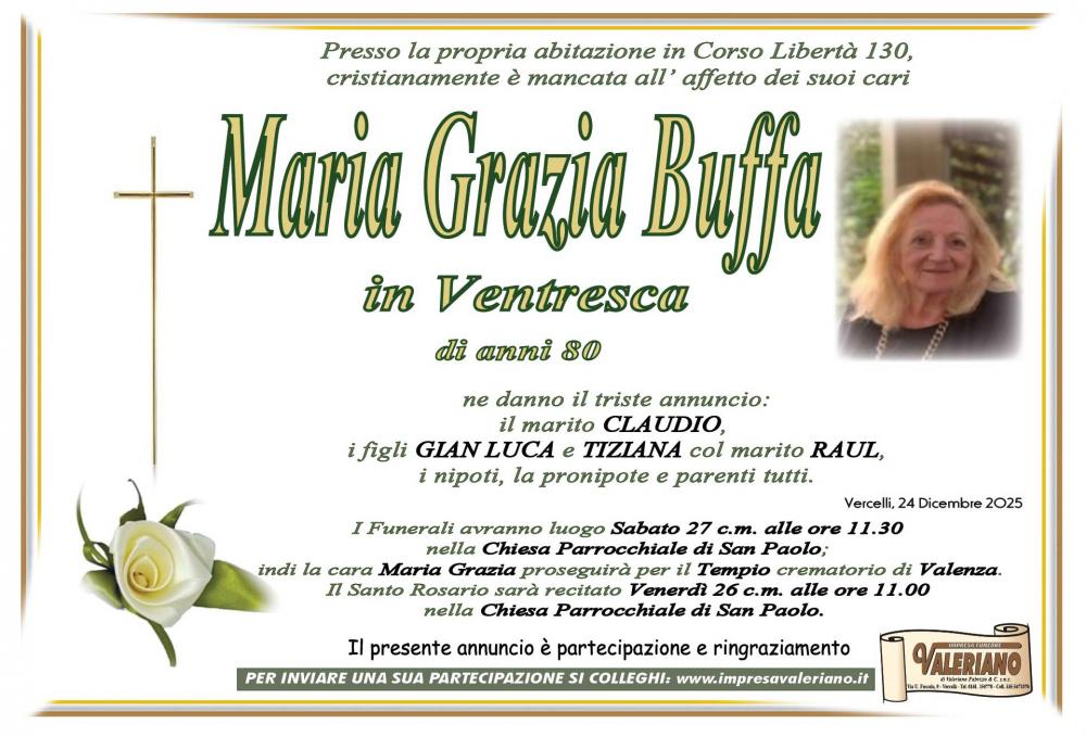Partecipazione al lutto per la scomparsa di MARIA GRAZIA BUFFA di anni 80