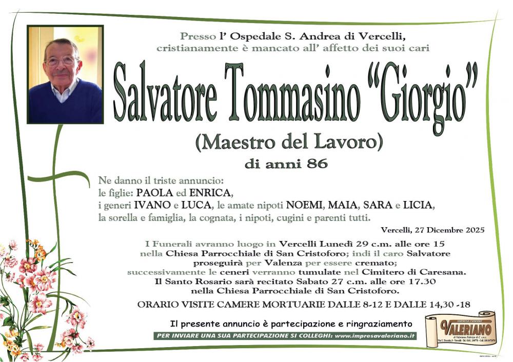 Partecipazione al lutto per la scomparsa di SALVATORE TOMMASINO di anni 86