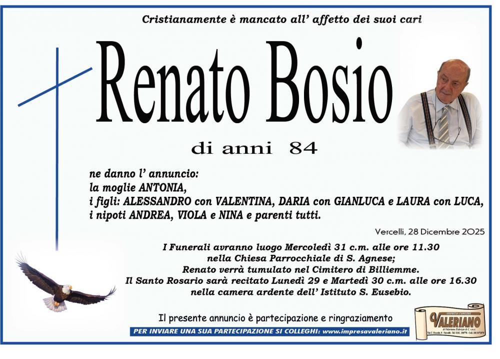 Partecipazione al lutto per la scomparsa di RENATO BOSIO di anni 84