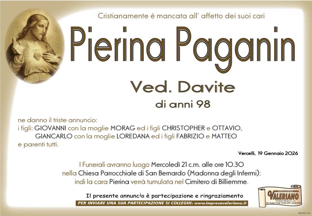 Partecipazione al lutto per la scomparsa di PIERINA PAGANIN di anni 98