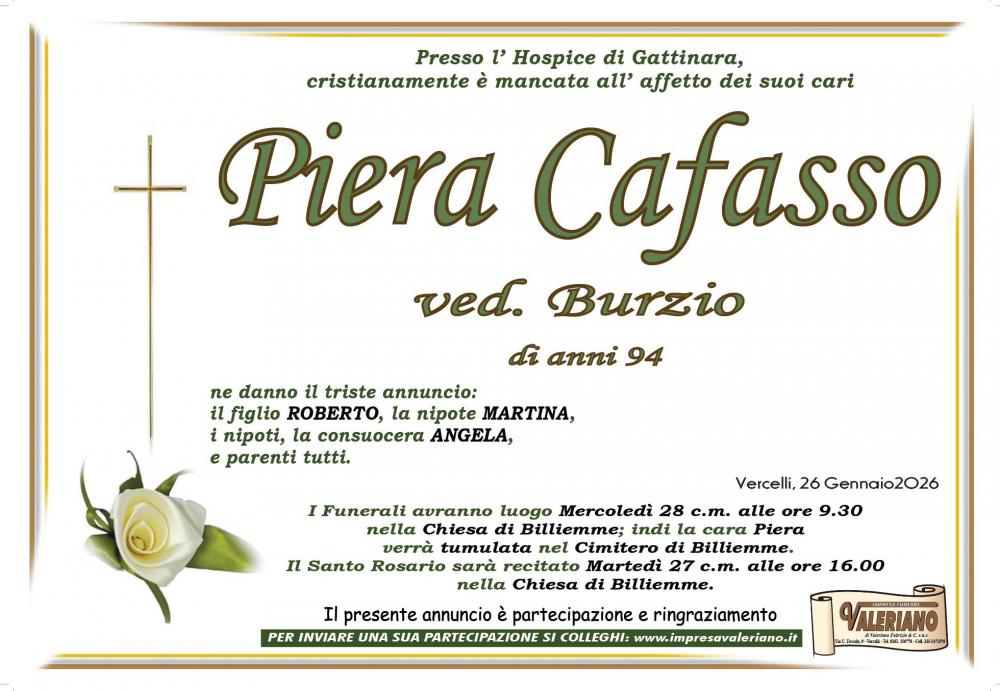 Partecipazione al lutto per la scomparsa di PIERA CAFASSO di anni 94