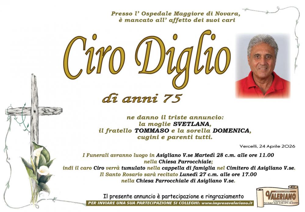 Partecipazione al lutto per la scomparsa di DIGLIO CIRO di anni 75