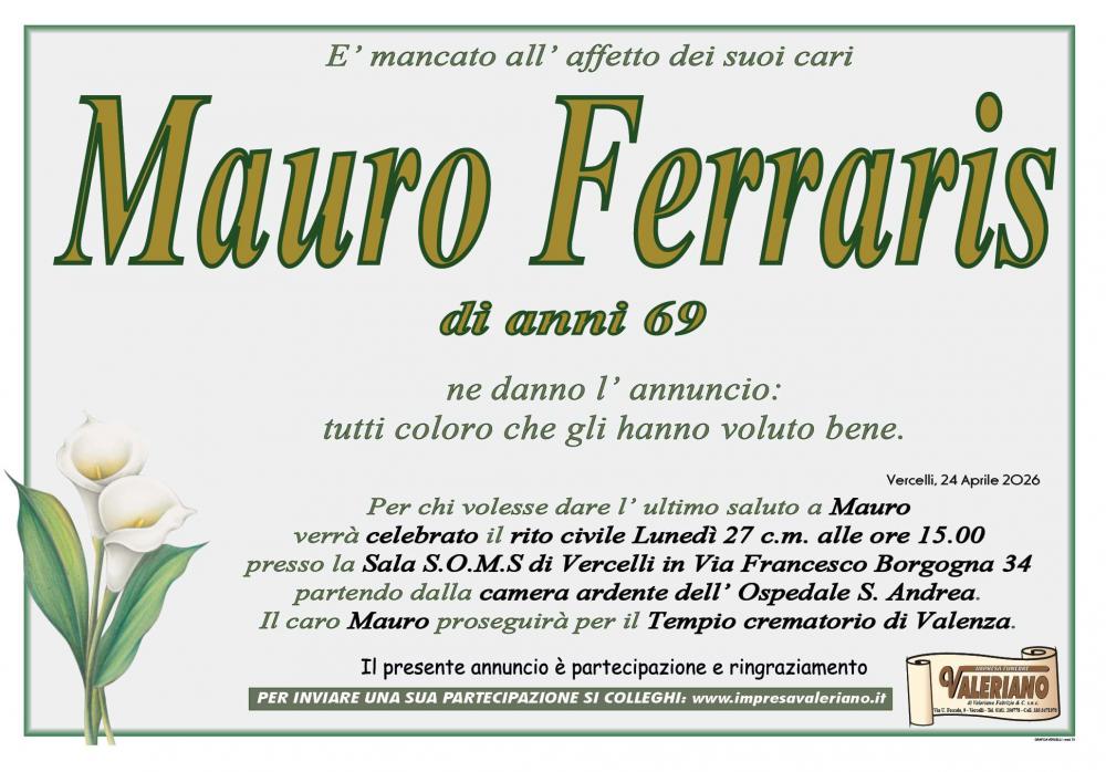 Partecipazione al lutto per la scomparsa di MAURO FERRARIS di anni 69